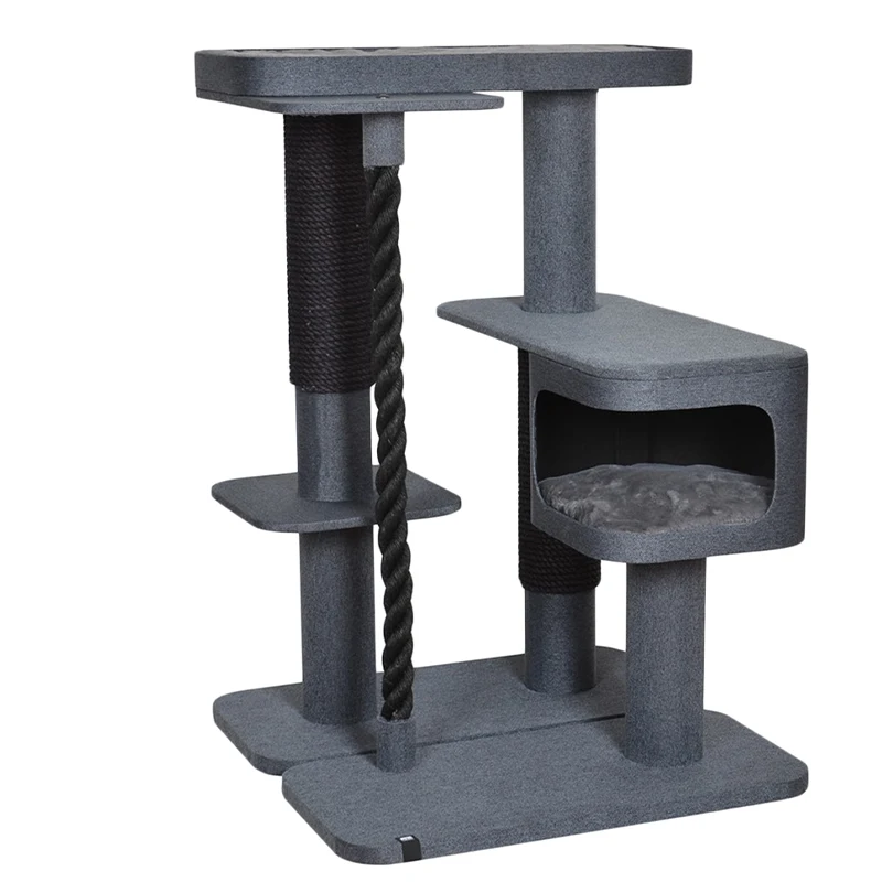 Sa structure robuste assure une stabilité parfaite, même pour les chats les plus énergiques. Son revêtement doux et ses poteaux en sisal en font un accessoire idéal pour jouer, faire ses griffes et se reposer.