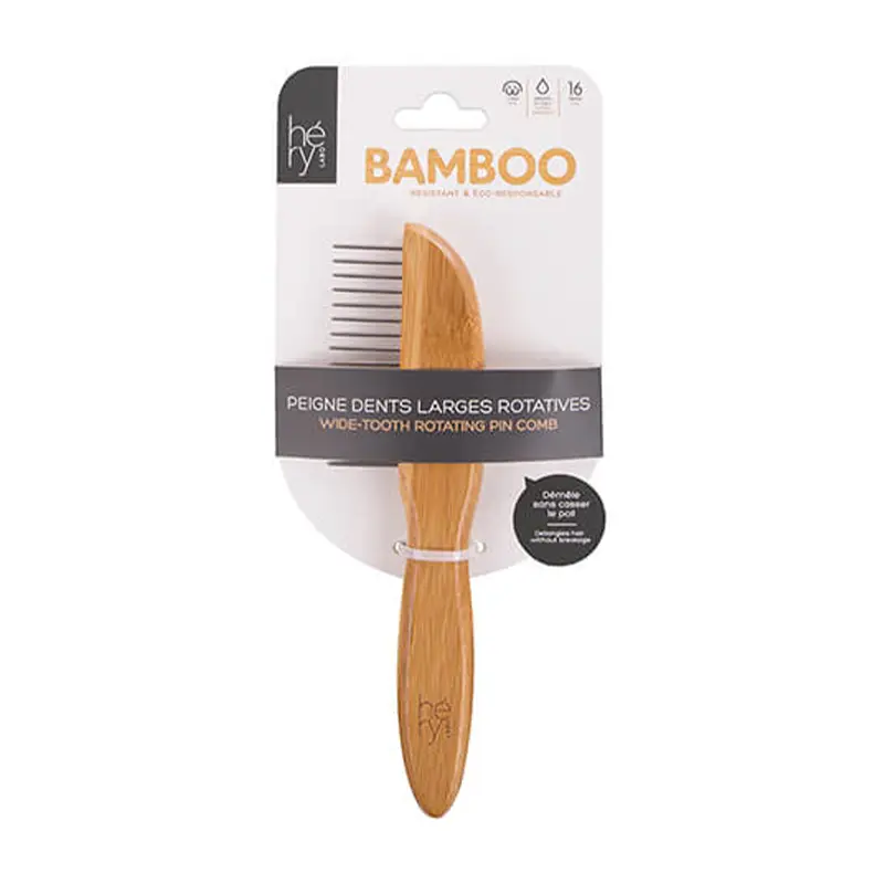 HERY | Bamboo Wide-Tooth Rotating Pin Comb 22 cm