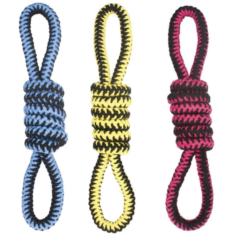 Fabriquée en coton de haute qualité, elle résiste aux morsures et à l’usure, offrant à votre chien des heures de divertissement. Son nœud central facilite la prise en main, permettant à votre chien de tirer, secouer ou mâchouiller le jouet.